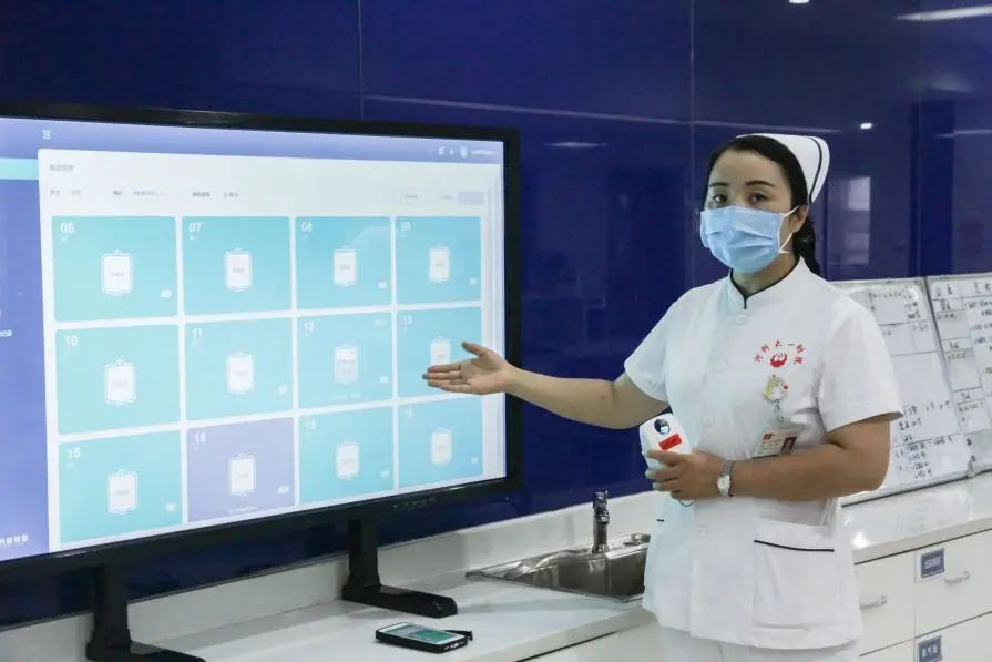 以往,病房輸液是讓護(hù)士和患者最操心的一環(huán),護(hù)士得來(lái)回跑動(dòng)反復(fù)查看確認(rèn),患者也得盯著輸液袋生怕錯(cuò)過拔針。而在智慧病房,一個(gè)小小的輸液傳感器,加上護(hù)理白板或者移動(dòng)終端,護(hù)士就可以同時(shí)查看所有患者的輸液情況,輸液異常、需要拔針時(shí)都會(huì)有智能提醒保障了患者的輸液安全,也提高了護(hù)士的工作效率。