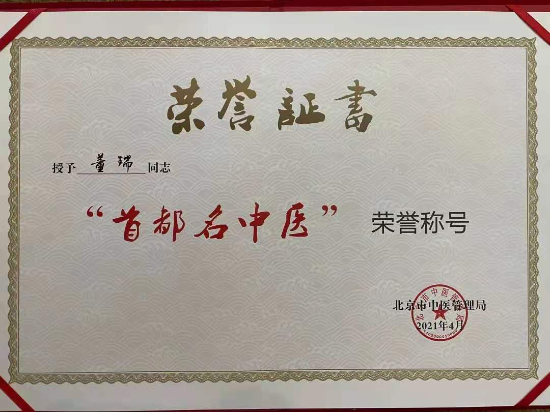 傳承、守正、創(chuàng)新、大醫(yī)精誠,是對董瑞三十五年中醫(yī)藥生涯的真實寫照,榮獲首屆“首都名中醫(yī)”榮譽稱號,是對他從醫(yī)以來一直致力于中醫(yī)文化傳承、堅守臨床一線的肯定,也是他對“敬佑生命、救死扶傷、甘于奉獻、大愛無疆”的職業(yè)精神的最好詮釋。